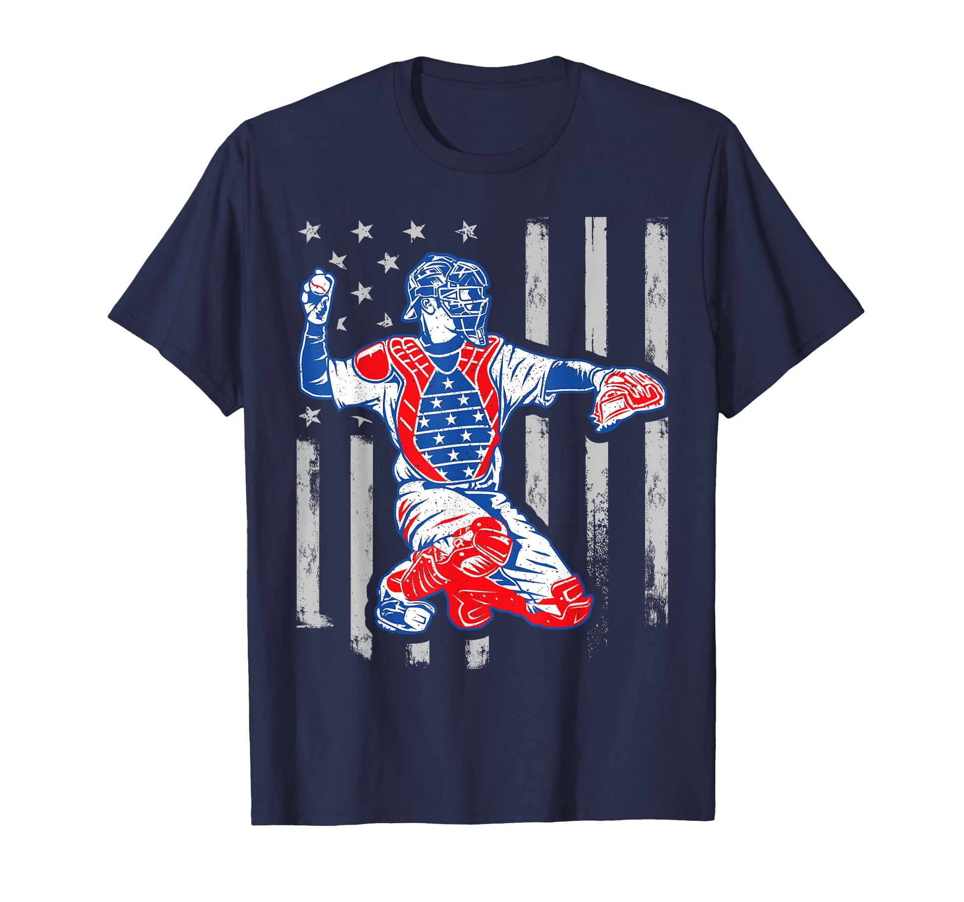 American Baseball Catcher USA Vintage Flag 4th of July Boys T-Shirt