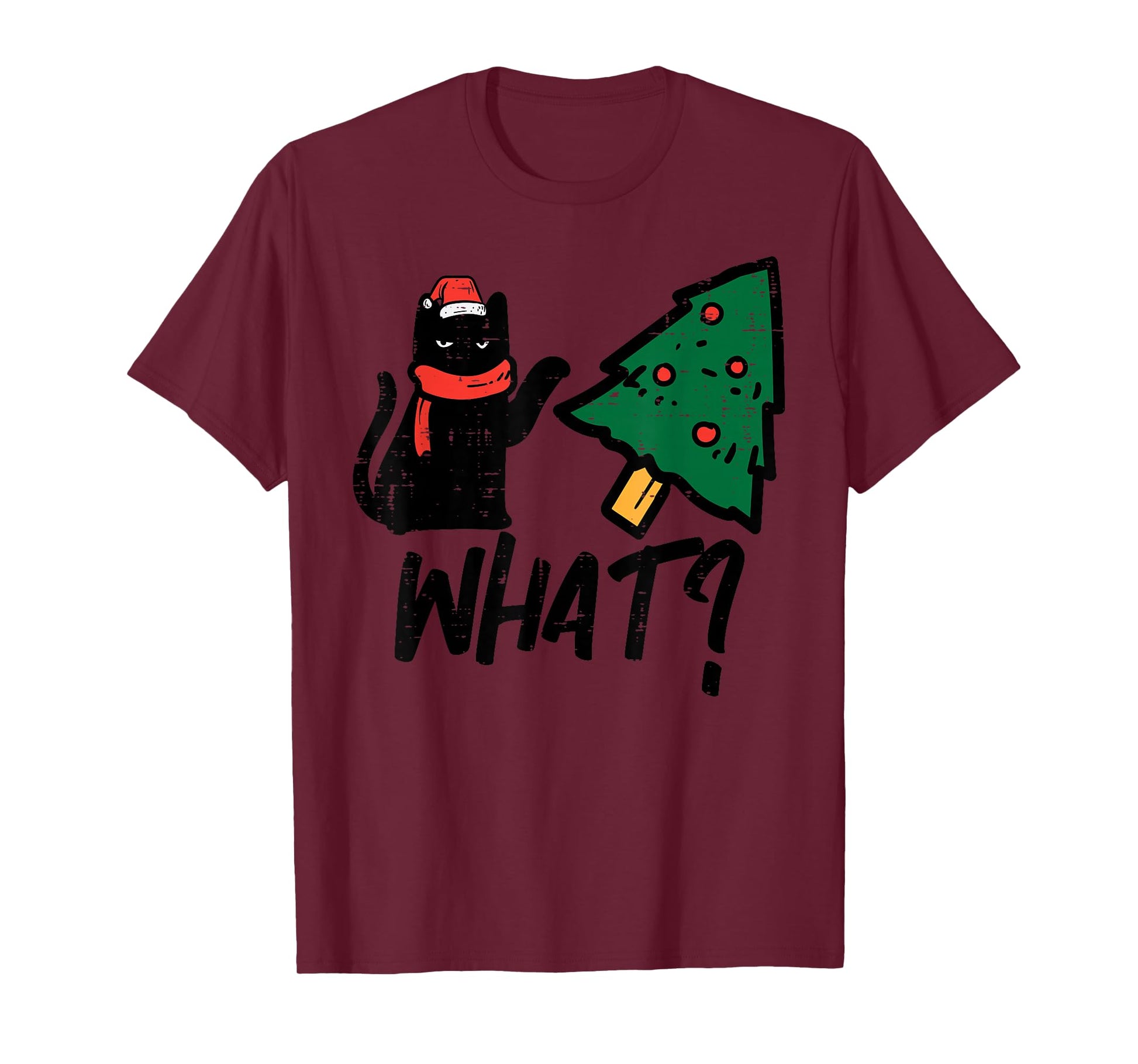 Black Cat Tipping Christmas Tree What Funny Men Women Kids T-Shirt