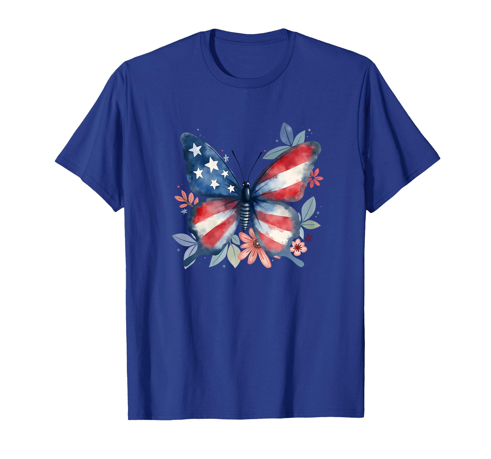 Butterfly Floral American Flag USA 4th Of July Girls Women T-Shirt