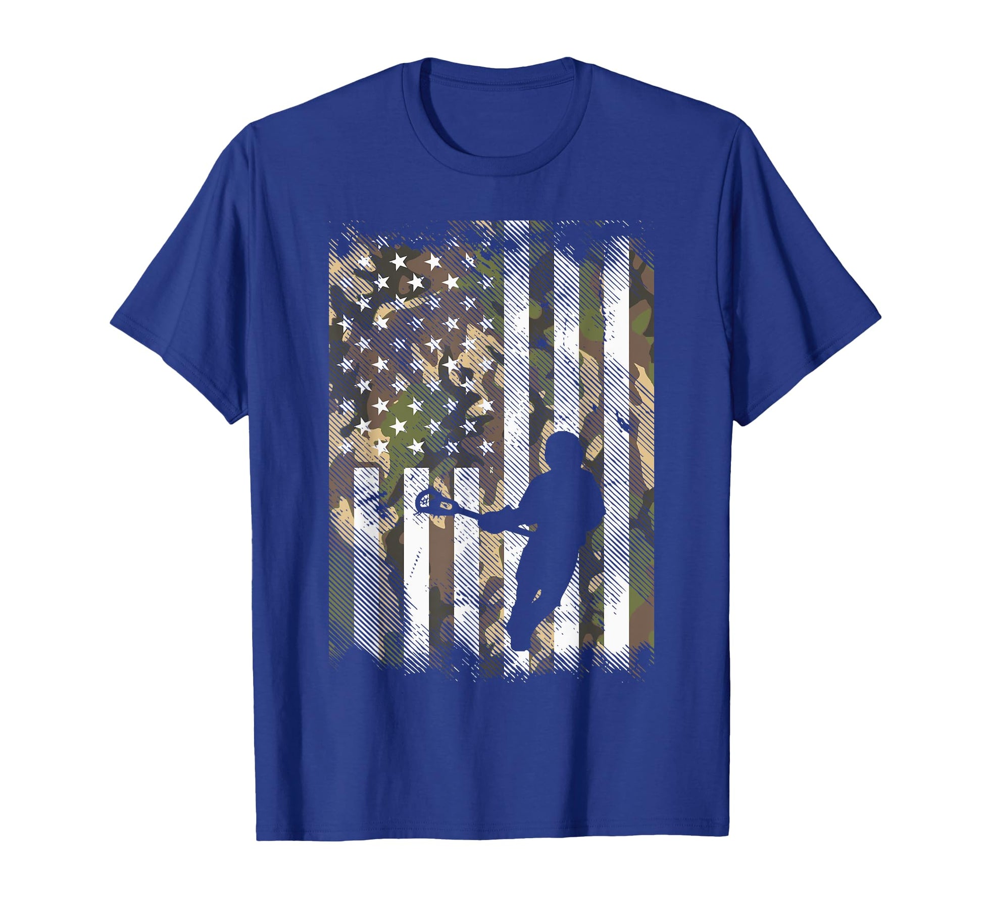 Camo Flag Lacrosse Vintage Patriotic Lax Player Men Women T-Shirt
