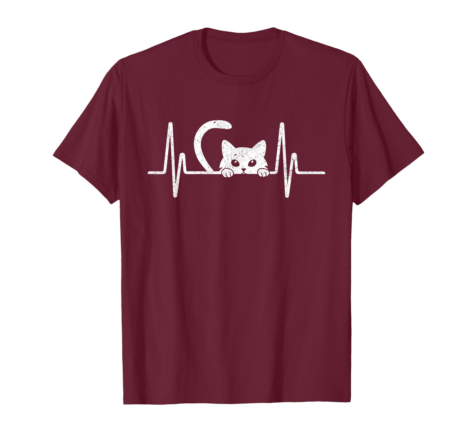 Cat Heartbeat Shirt Cute Kids Men Women Cat Lover Heart Beat T-Shirt