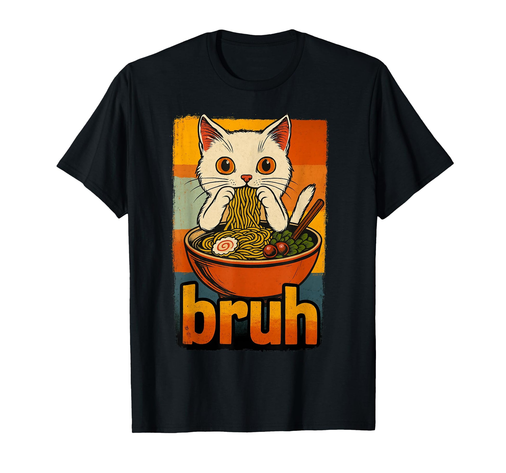 Funny Cat Eating Japanese Ramen Noodles Gifts Men Women Kid T-Shirt