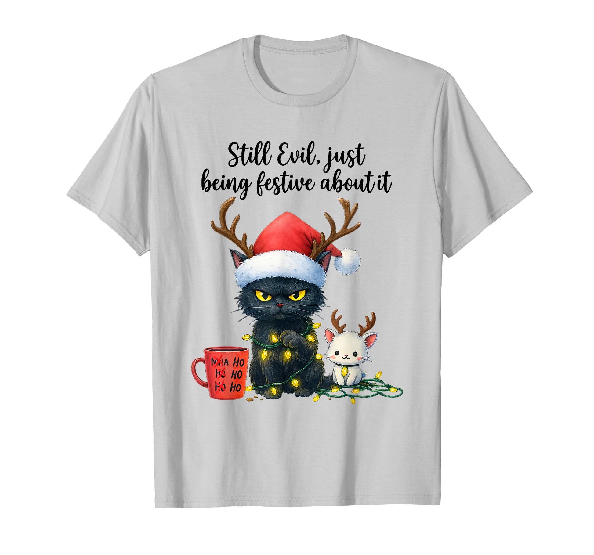 Funny Still Evil Just Being Festive About It Cat Christmas T-Shirt