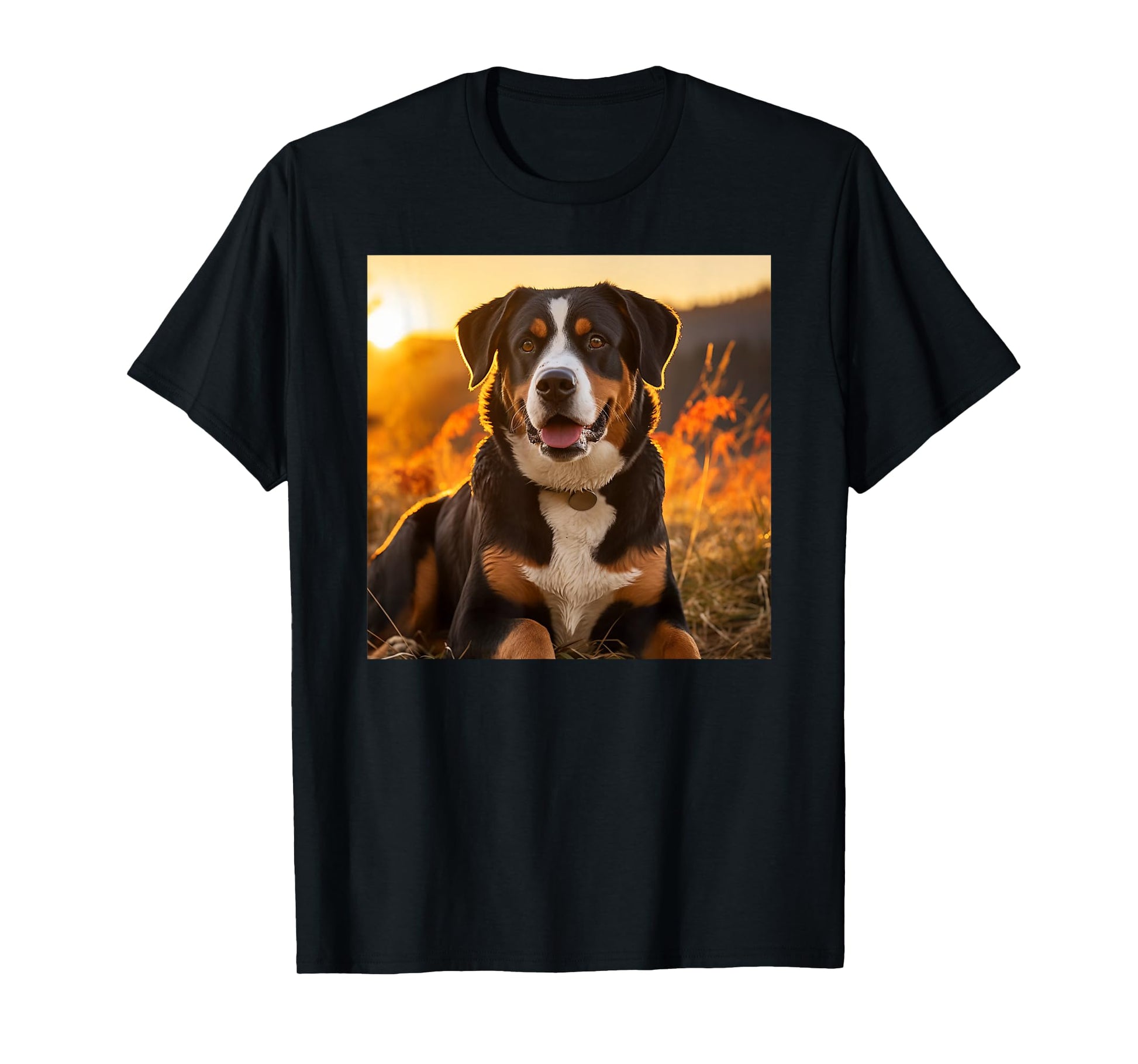 Greater Swiss Mountain Dog Sitting In The Sunset Photography T-Shirt