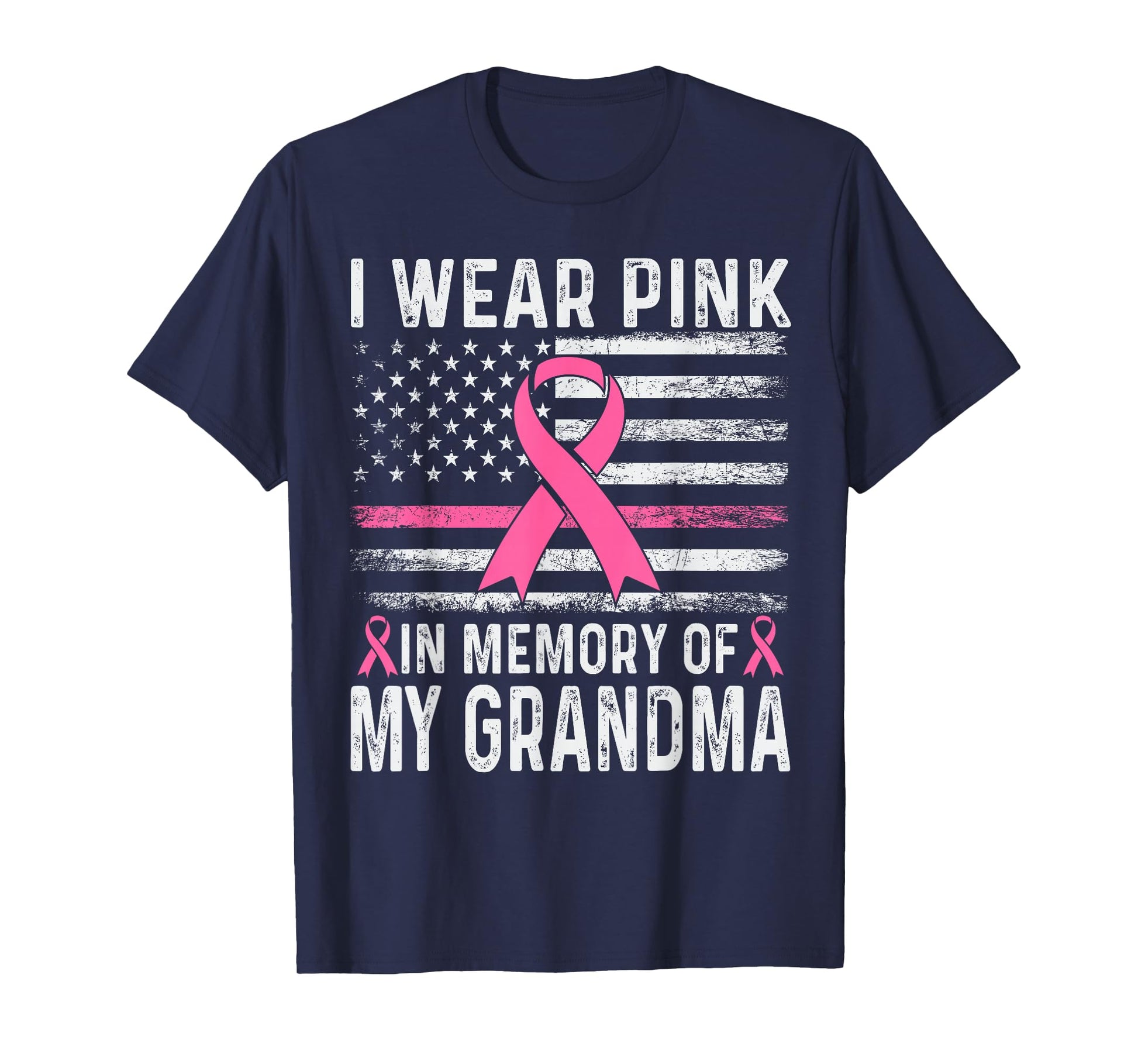 I Wear Pink in Memory of My Grandma USA Flag Breast Cancer T-Shirt