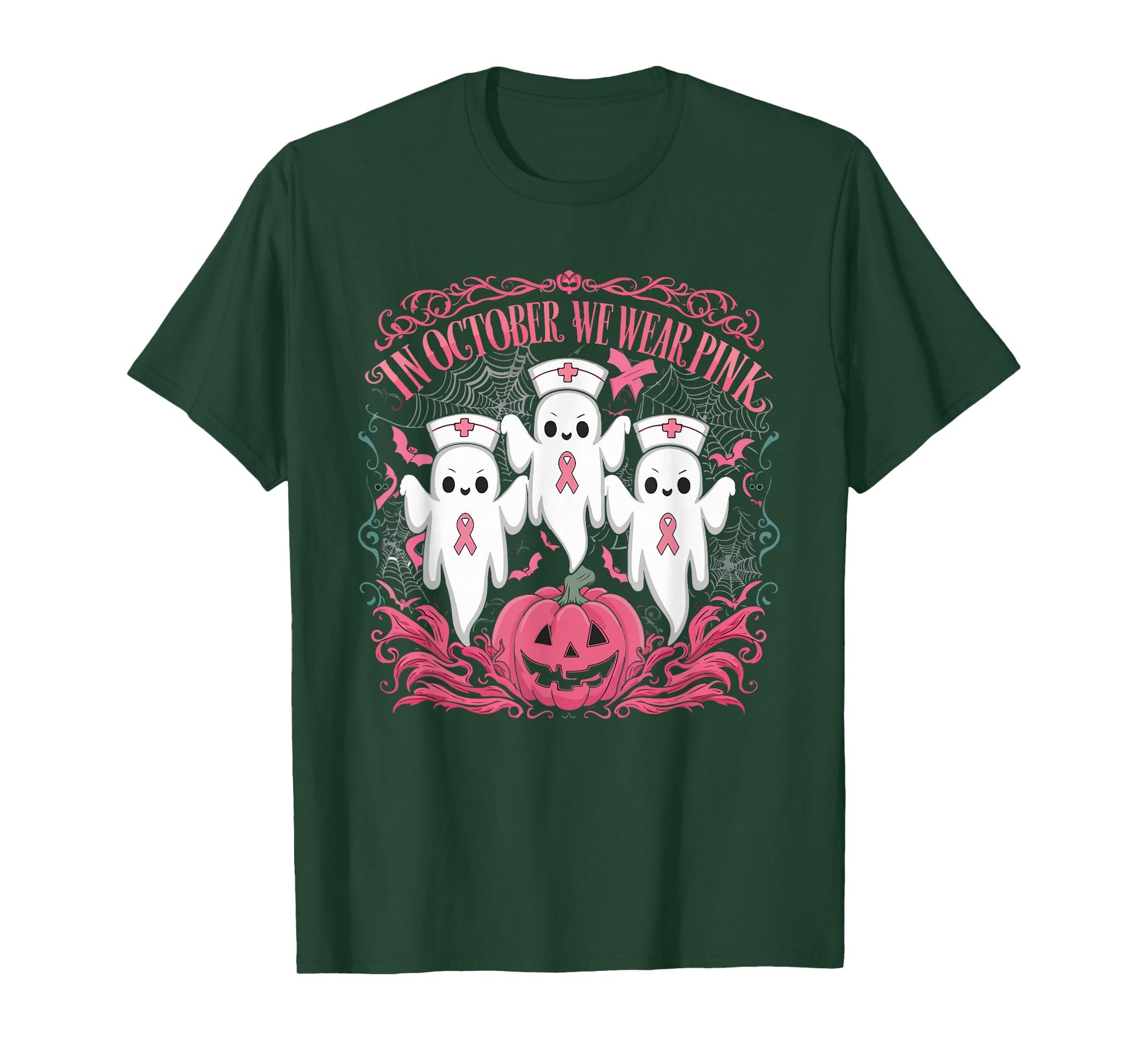 In October We Wear Pink Ribbon Nurse Ghost Halloween T-Shirt