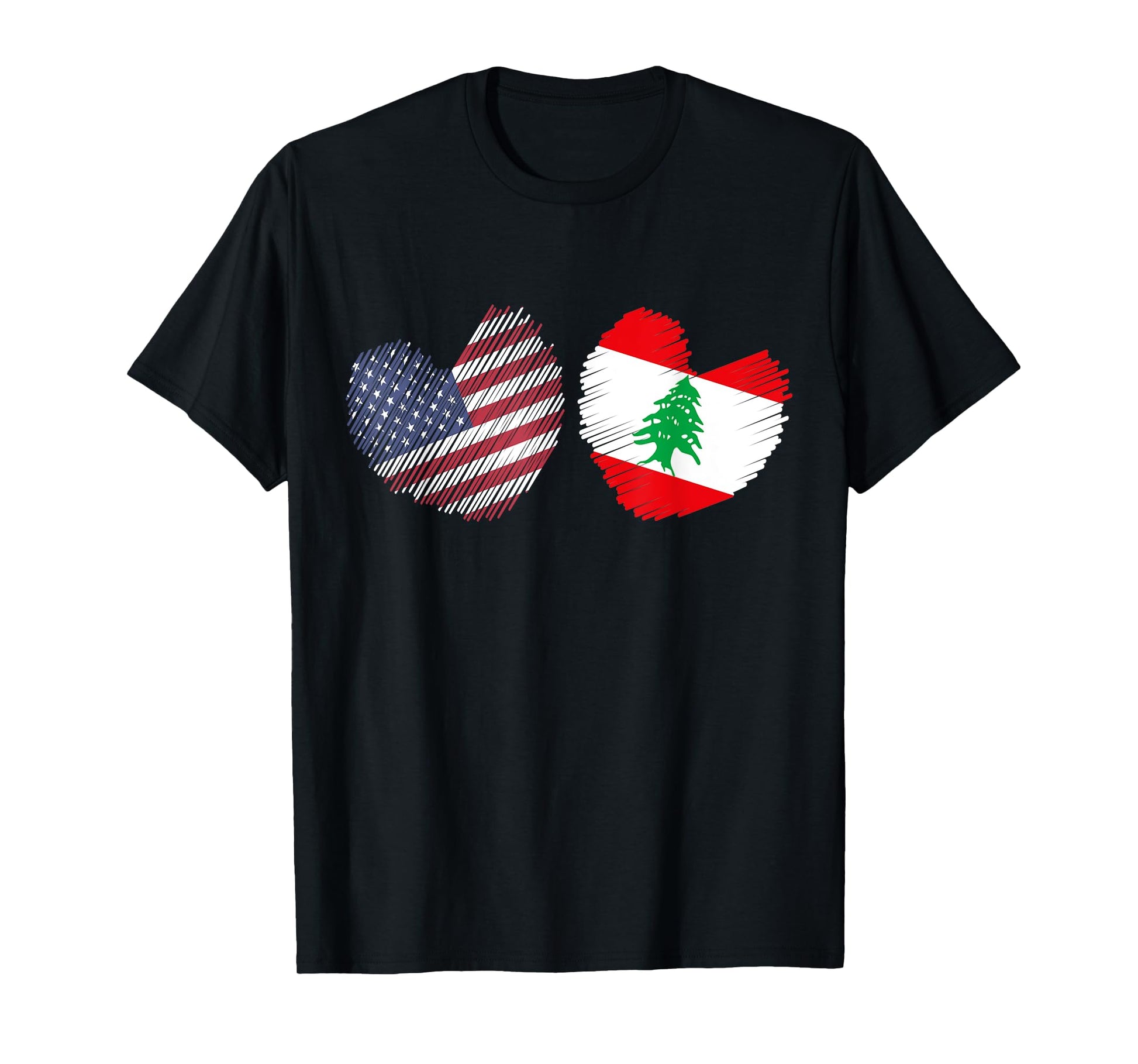 Lebanon USA Heart American Flag Lebanese Flag Love Heart T-Shirt