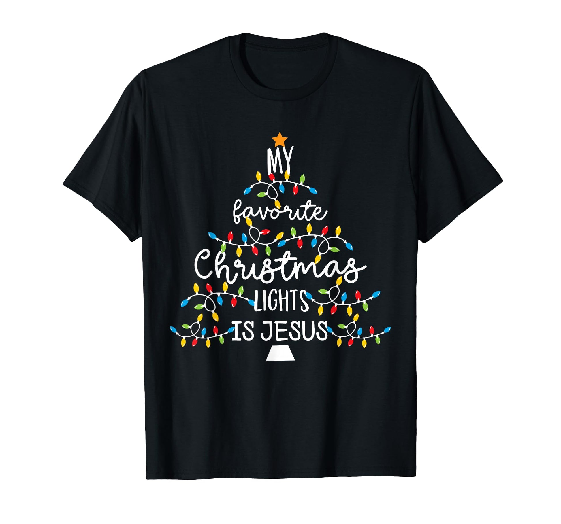 My Favorite Christmas Light Is Jesus Apparel Tees Women's Unisex Classic Fit Short Sleeve Black Cotton Blend Modern Lightweight Christian Xmas T-Shirt