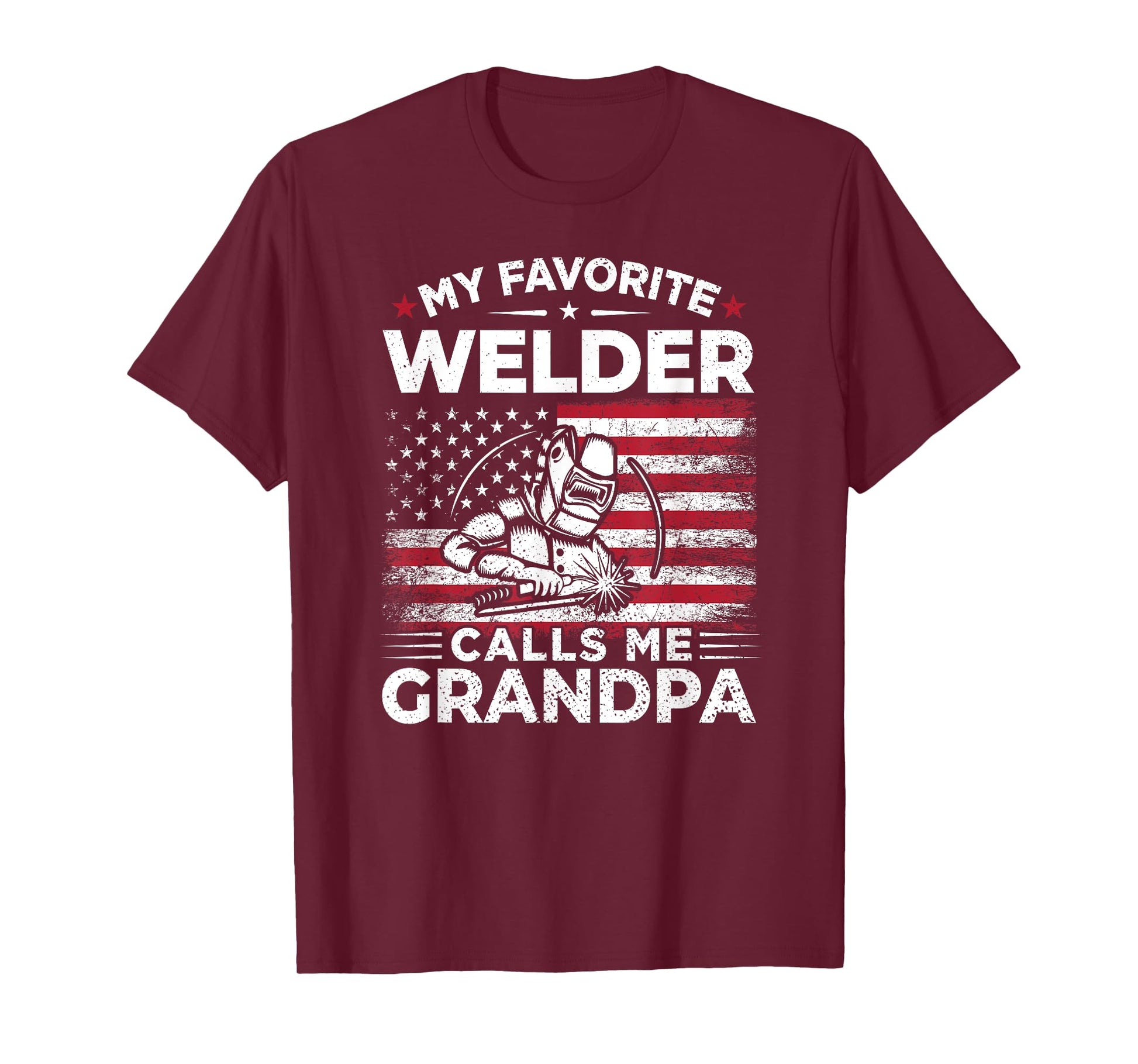 My Favorite Welder Calls Me Grandpa USA Flag Grandma Gift T-Shirt for Women Men
