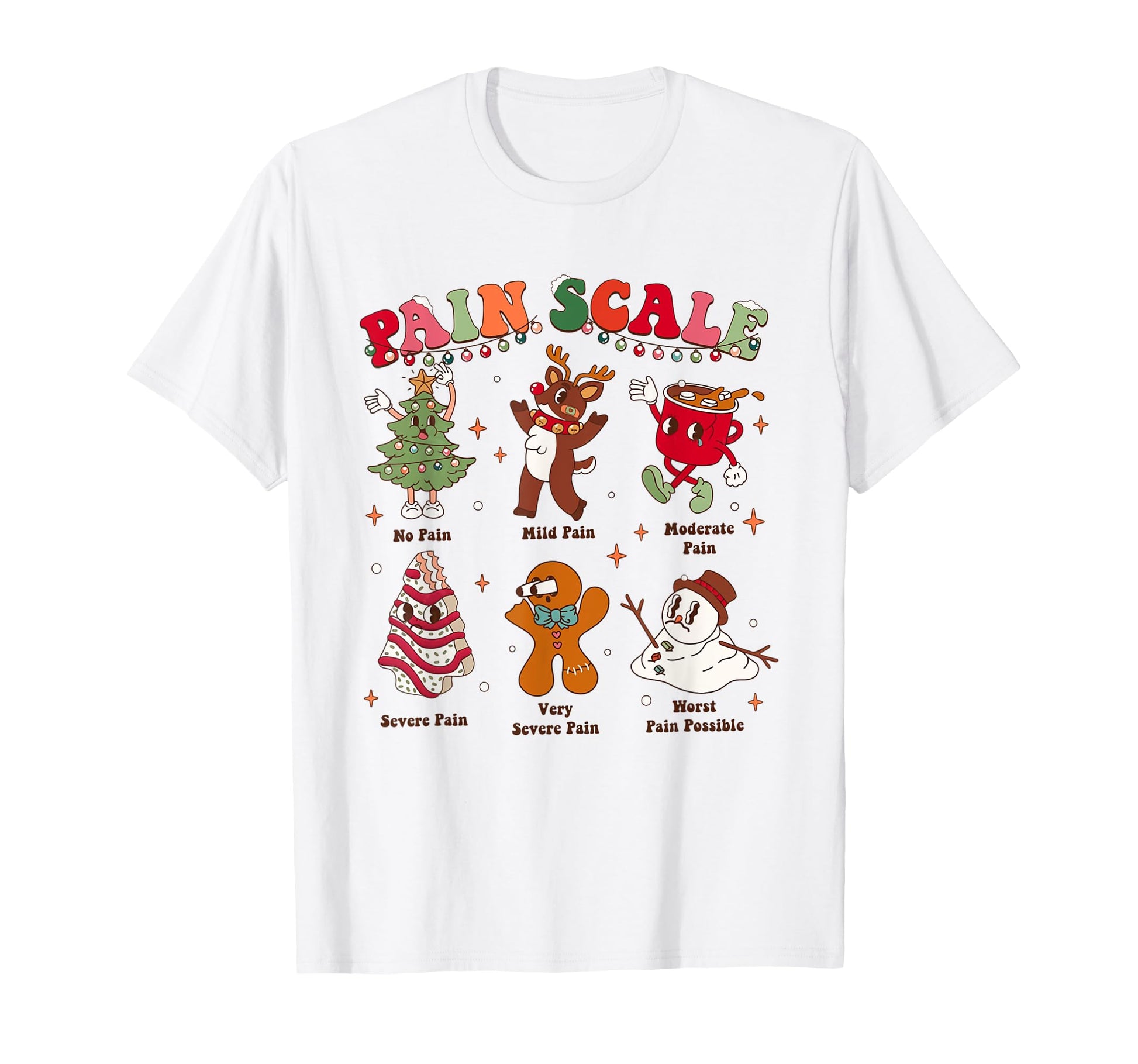 Pain Scale Retro Christmas Nurse Triage and Pain Assessment T-Shirt