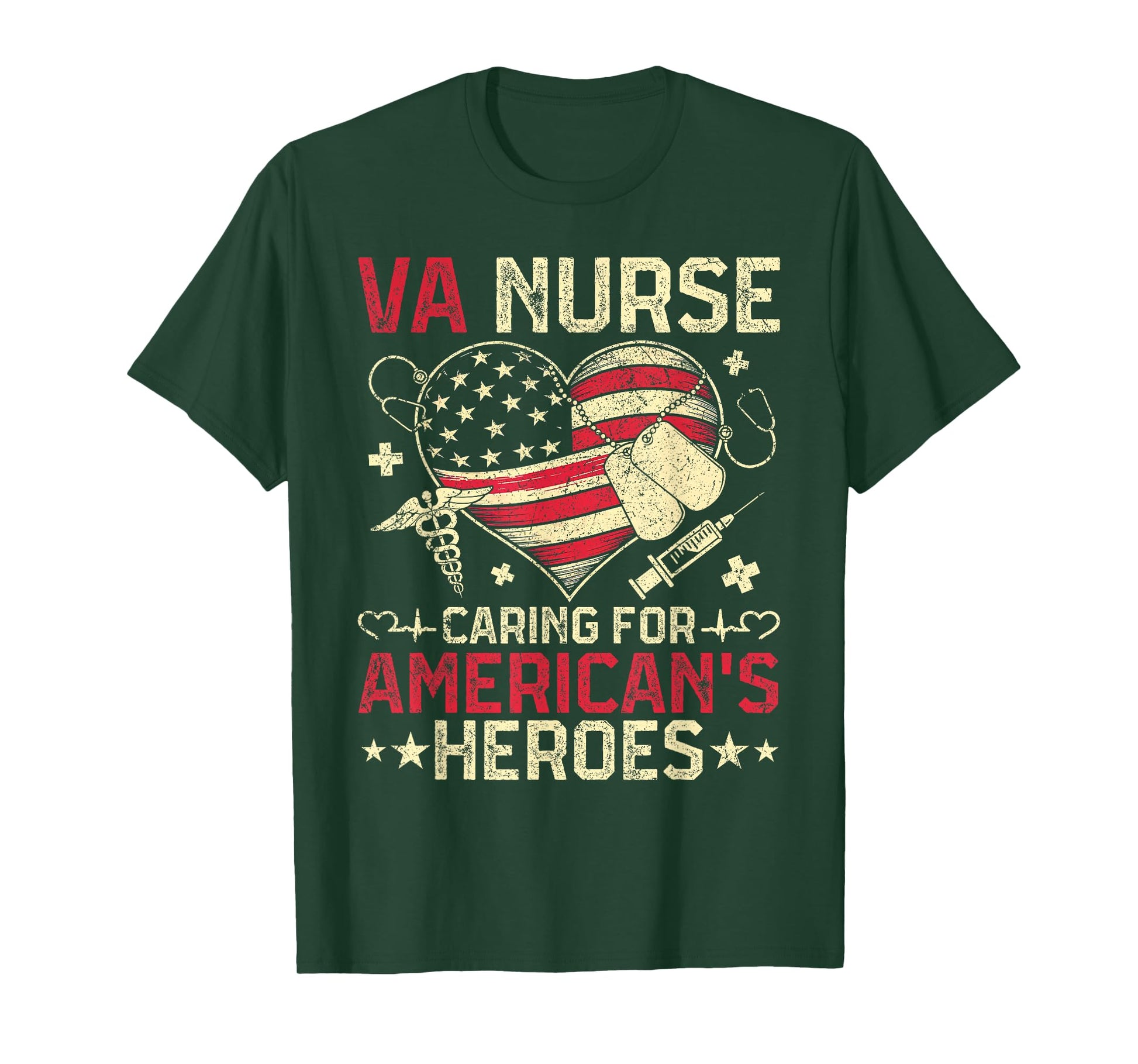 VA Nurse Caring For America's Heroes Veterans Day USA Heart T-Shirt