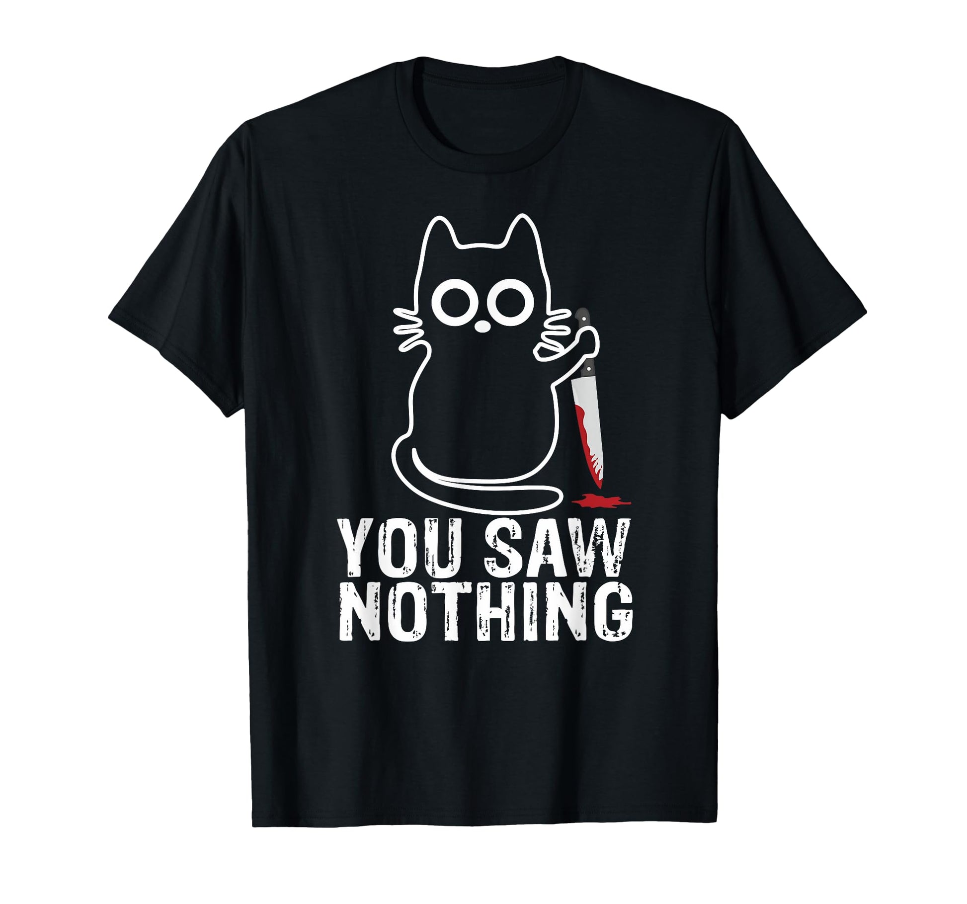 You Saw Nothing! - Funny Cat With Knife Graphic Design Men Women Girls Kids T-Shirt